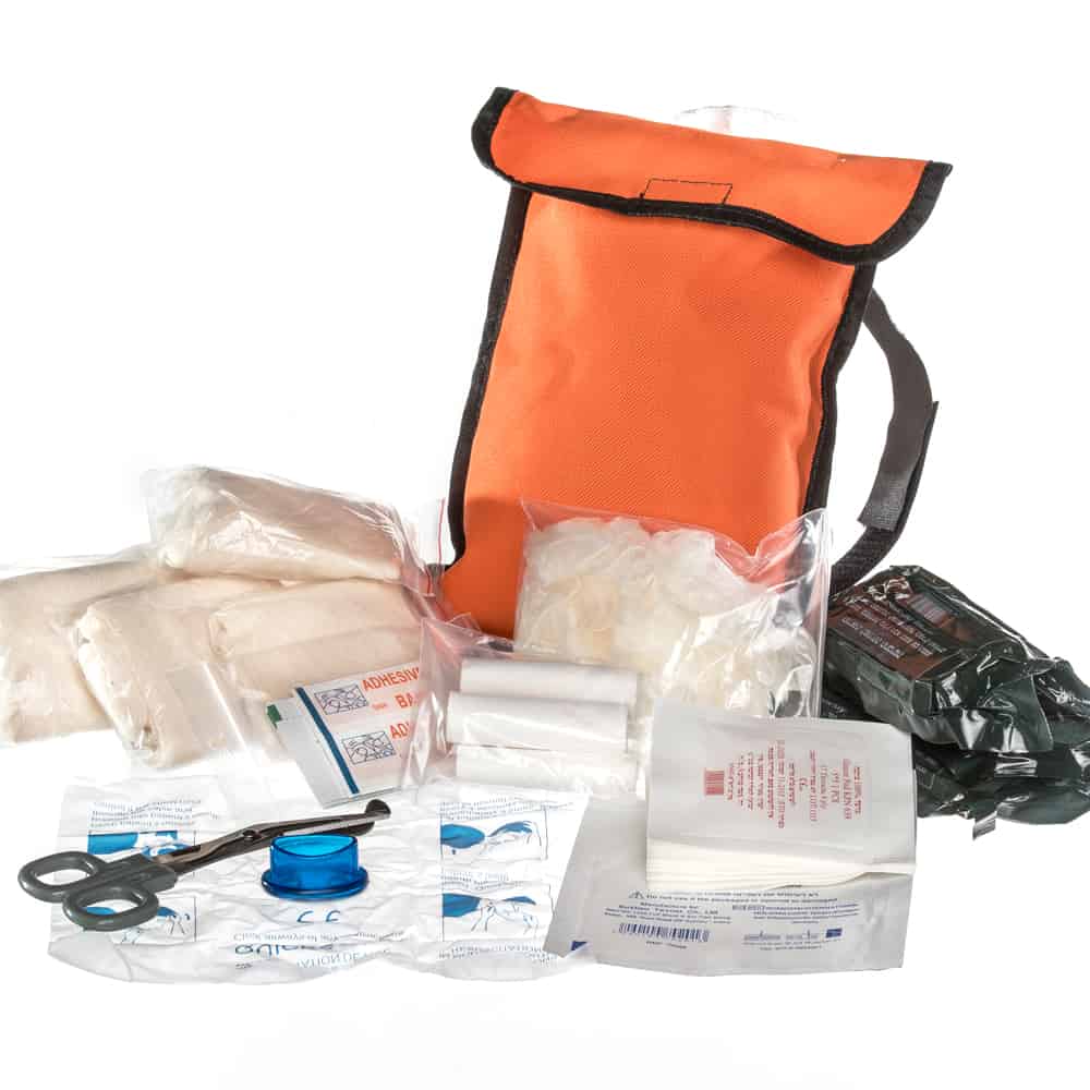 תקן: על פי תקנות הבטיחות בעבודה מיועד: למקומות עבודה עד 49 איש תכולה: 4 אגד גאזה מגולגל כותנה 7 ס"מ, 10 פלסטר – אגד מדבקה, 10 פד גאזה סטרילי כותנה 8 שכבות 5*5 ס"מ, 6 משולש בד איכותי כותנה 100% 2+ סיכות ביטחון, 3 תחבושת אישית סטרילית דגם צבאי, 6 פד ספוג באלכוהול 70% לחיטוי, תחבושת לכוויות פד פודיזון סטרילי 10*10, זוג מספרים ממתכת, מסיכת הנשמה, דגם "מנשים מציל", 2 זוגות כפפות ויניל, סטיקלייט איכותי זוהר