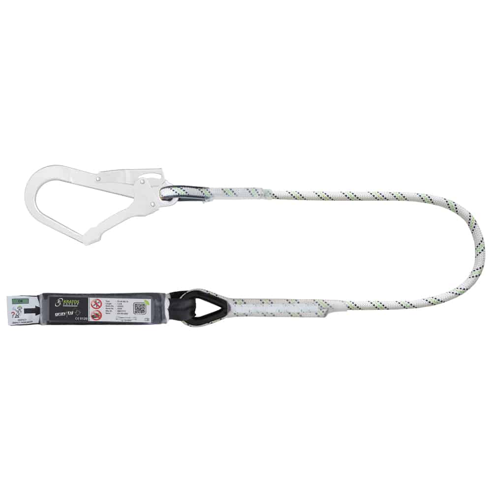תקן : EN355:2002 חבל קלוע, פוליאמיד קרמנטל (ליבה ומעטפת) אורך 1.5 מ', קוטר 12 מ"מ עם סופג אנרגיה ברוחב 35 מ"מ להפחתה משמעותית של עוצמת הנפילה לולאות תפורות בתפר כפול וגלוי (לבדיקה קלה טרום שימוש) שרוול הגנה ואיזקות לחיבור בטיחותי של מחברים אונקל במפתח 17 מ"מ בקצה אחד ואונקל במפתח 55 מ"מ בקצהו השני