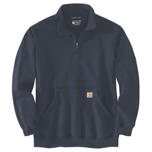 LOOSE FIT משקל 360 GSM 50% כותנה / 50% פוליאסטר ביטנת פליס שרוול ארוך צווארון קצר / מדומה כיס קידמי מחמם ידיים רוכסן באורך רבע לנוחות חגות מותן ושרוולית (אימרת השרוול) מבד ריב עם אלסטן לגמישות ונוחות מקסימלית תווית קארהארט תפורה על הכיס