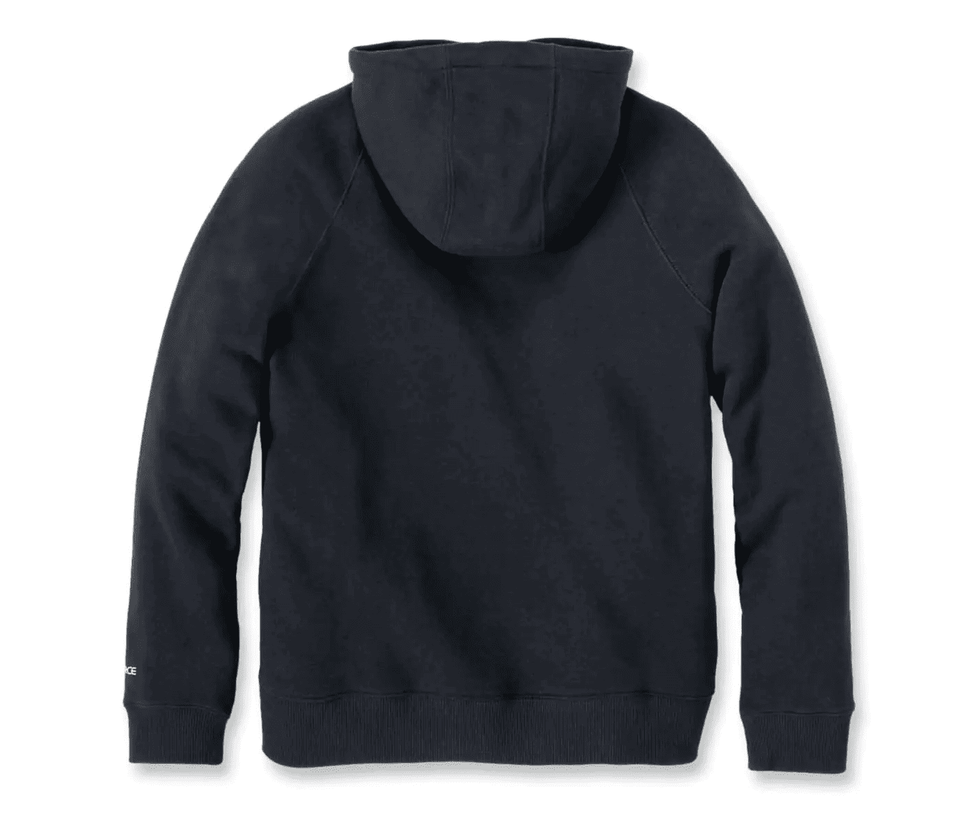 גזרת רילקסד משקל הבד: 250 גרם למ”ר הרכב: 60% כותנה / 40% פוליאסטר Carhartt Force™ – FastDry – ייבוש מהיר משולב עם מאפיינים אנטי בקטריאליים ברדס במבנה 3 חלקים כולל מיתר משיכה והתאמה. שרוולי רגלן ארוכים לחופש תנועה כיס קנגרו קידמי כולל בתוכו פאוץ’ רשת לאחסון מדיה מכפלו מבד ריב סרוג משולב אלסטן לגמישות ונוחות לאורך זמן גרפיקה מודפסת בחזית תווית Carhartt Force™ על שרוול שמאלי תווית Carhartt על הכיס