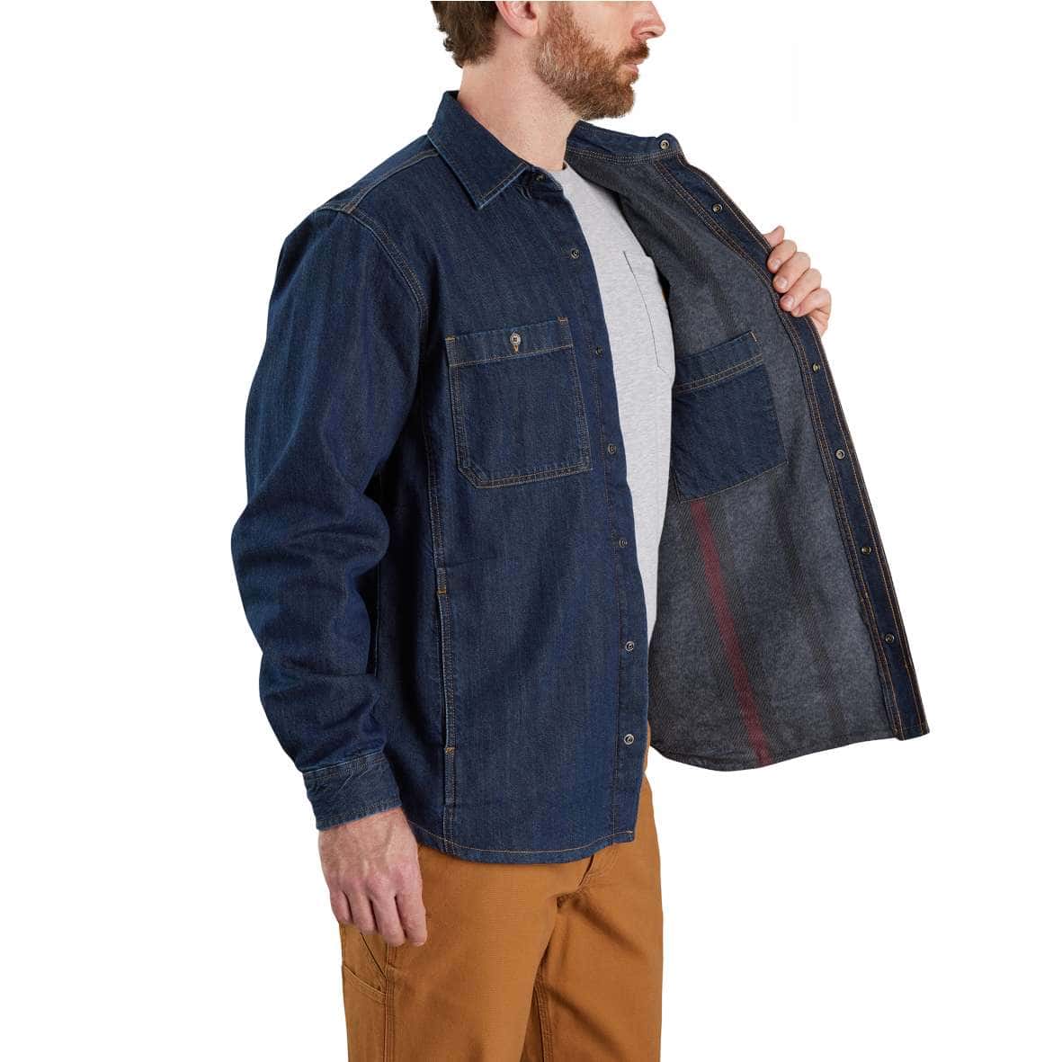 חולצת ג’קט מג’ינס לגברים עם ביטנת פולאר פליס מודפס מחממת וסגירת צמדנים בגזרת רילקסד. חולצת ג’קט קלאסית לעבודה ולפנאי עם הרבה מחוות לעבר ונוחות של העתיד