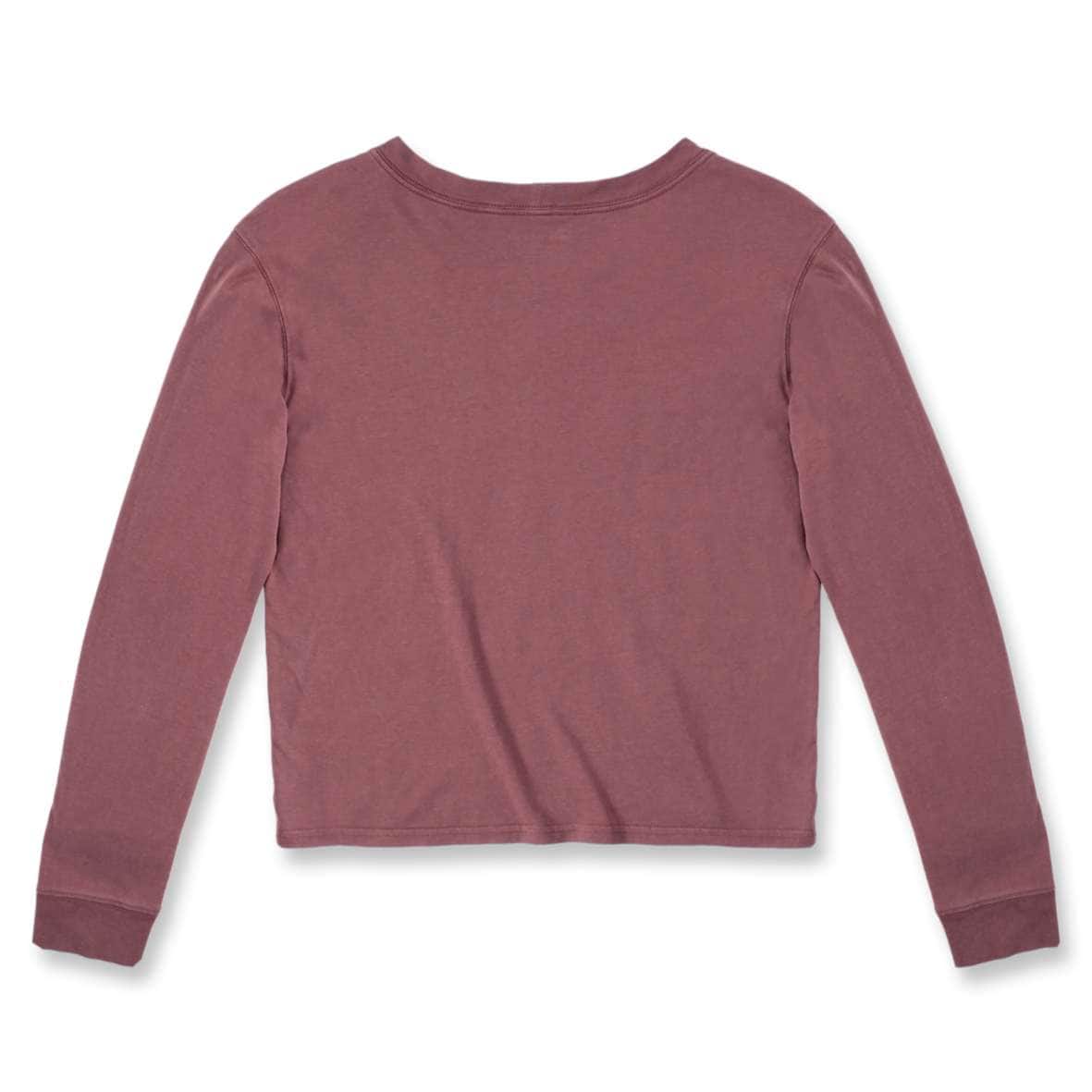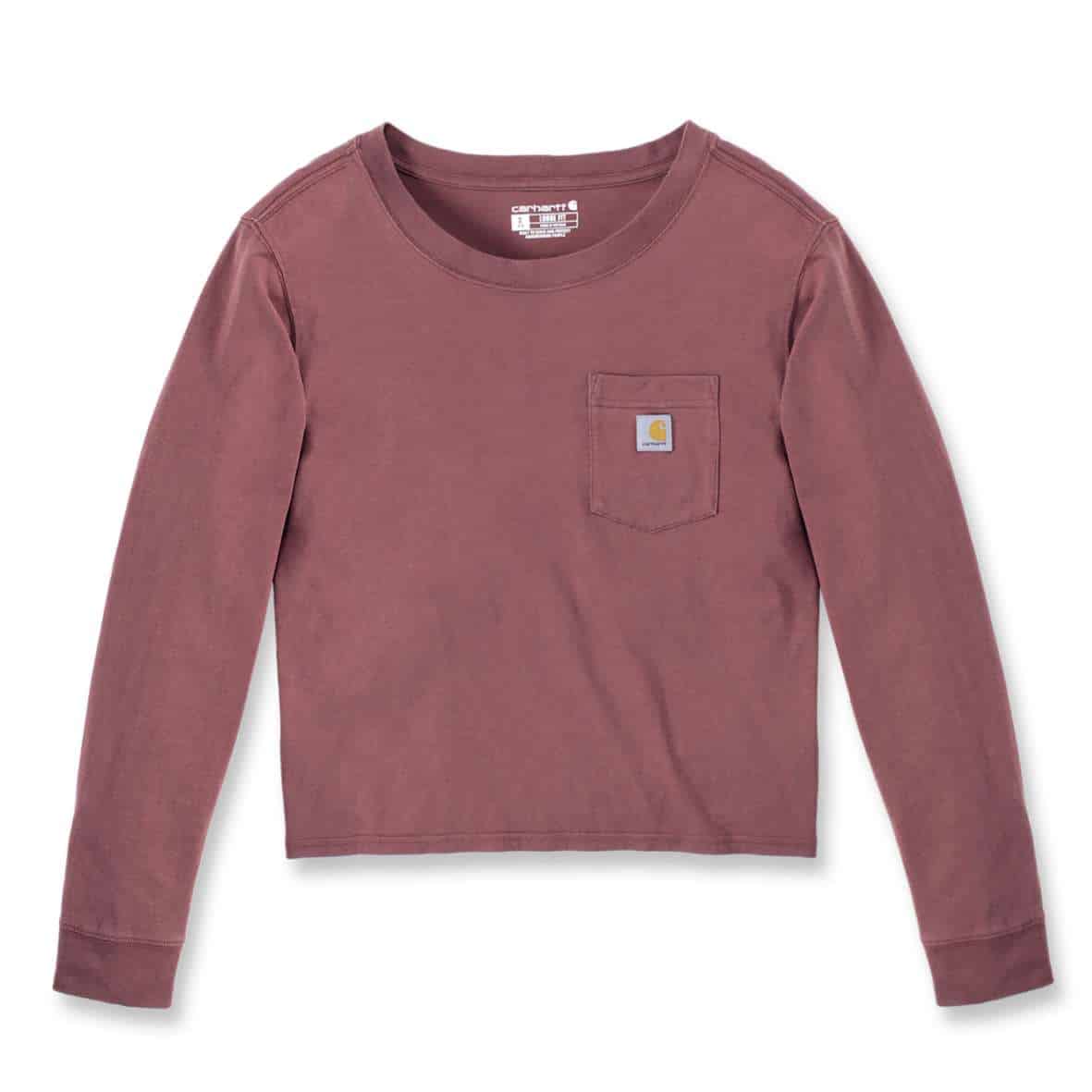 גזרת רילקסד פיט משקל 163 גרם למ”ר 60% Cotton/40% TENCEL™ Lyocell חולצת טי ג’רזי קלה שרוולים ארוכים צווארון קרו מריב אימרה שטוחה פיצול קטן בתפרי הצד לוגו קארהארט על האימרה