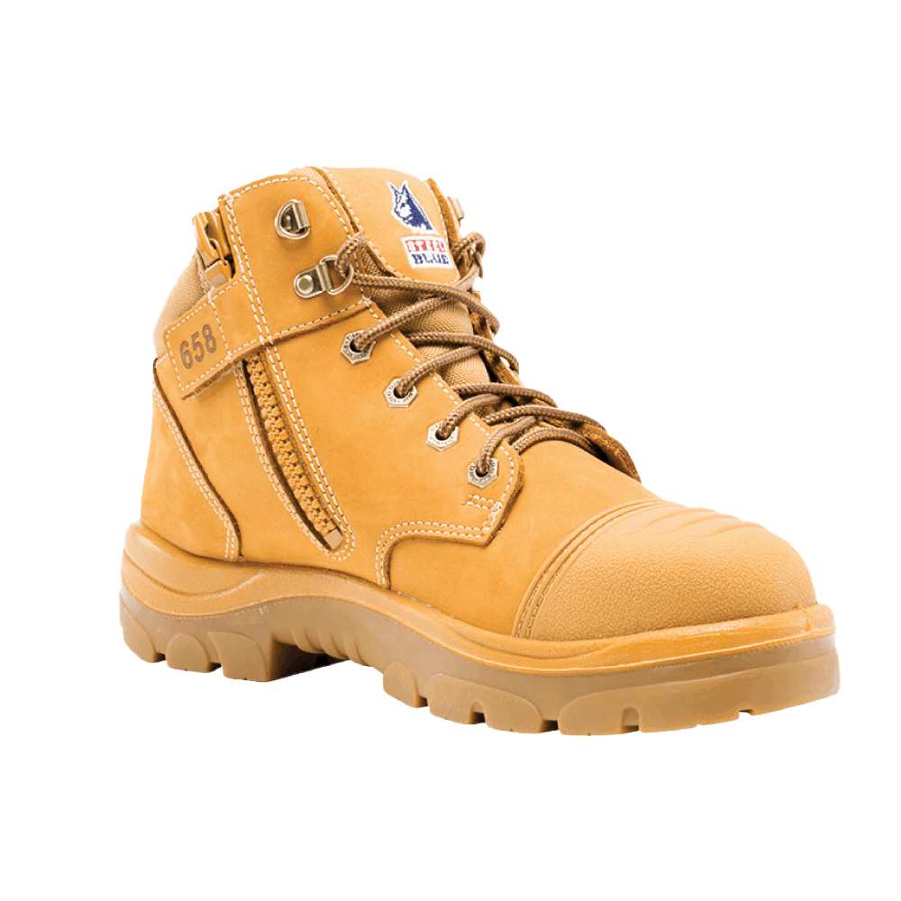 מגף עם שרוכים ורוכסן בסגנון HIKER לשון מרופדת לנוחות עם חרטום מחוזק. גובה מעל הקרסול 95 מ”מ. תועלות: רוכסן בצד (אחיזה כמו של נעל נוחות שימוש כמו של מגף), אנטי סטטי, נגד מים, נגד החלקה, מגן על החרטום לשמירה על שלמות העור (לא בטיחותי). חיצוני / גפה: עור טבעי משובח נגד מים. טבעות שרוך נגד חלודה. רוכסן תעשייתי חזק מאוד. סיומת אלכסונית לחופש תנועה. פנימי / בטנה: ביטנת המגף מ BALTICO® חומר רך ועמיד לשחיקה. מנדף נוזלים ולחות מהרגל החוצה כך שכף הרגל נותרת קרירה ויבשה. מדרס רפידה איכותית לכל אורכה של המגף מעניקה עוד שכבה של נוחות ותמיכה . הרפידה עשויה מפוליאוריטן רך שישמר את צורתו לכל אורך חיי המגף. חרטום הנעל -לא בטיחותי, SCAFF CAP שכבה המגנה על העור. סולייה פנימית: גמישה ועמידה, אנטי בקטריאלית ולא ארוגה. סולייה תיכונה: הזרקת פוליאוריטן ישירה לספיגת זעזועים טובה יותר. סוליה חיצונית: TPU אנטי סטטית , לעמידות מוגברת. התנגדות לחום עד 130°. TRISOLE® טכנולוגיית נוחות: מערכת הסולייה הפטנטית של STEEL BLUE®’ מעניקה רמת נוחות גבוהה, בלימת זעזועים והחזר אנרגיה. המערכת משתמשת ב PORON® כסופג אנרגיה בנקודות לחץ וכך מעניקה נוחות ברמה הגבוהה ביותר ממש כמו נעלי ריצה.