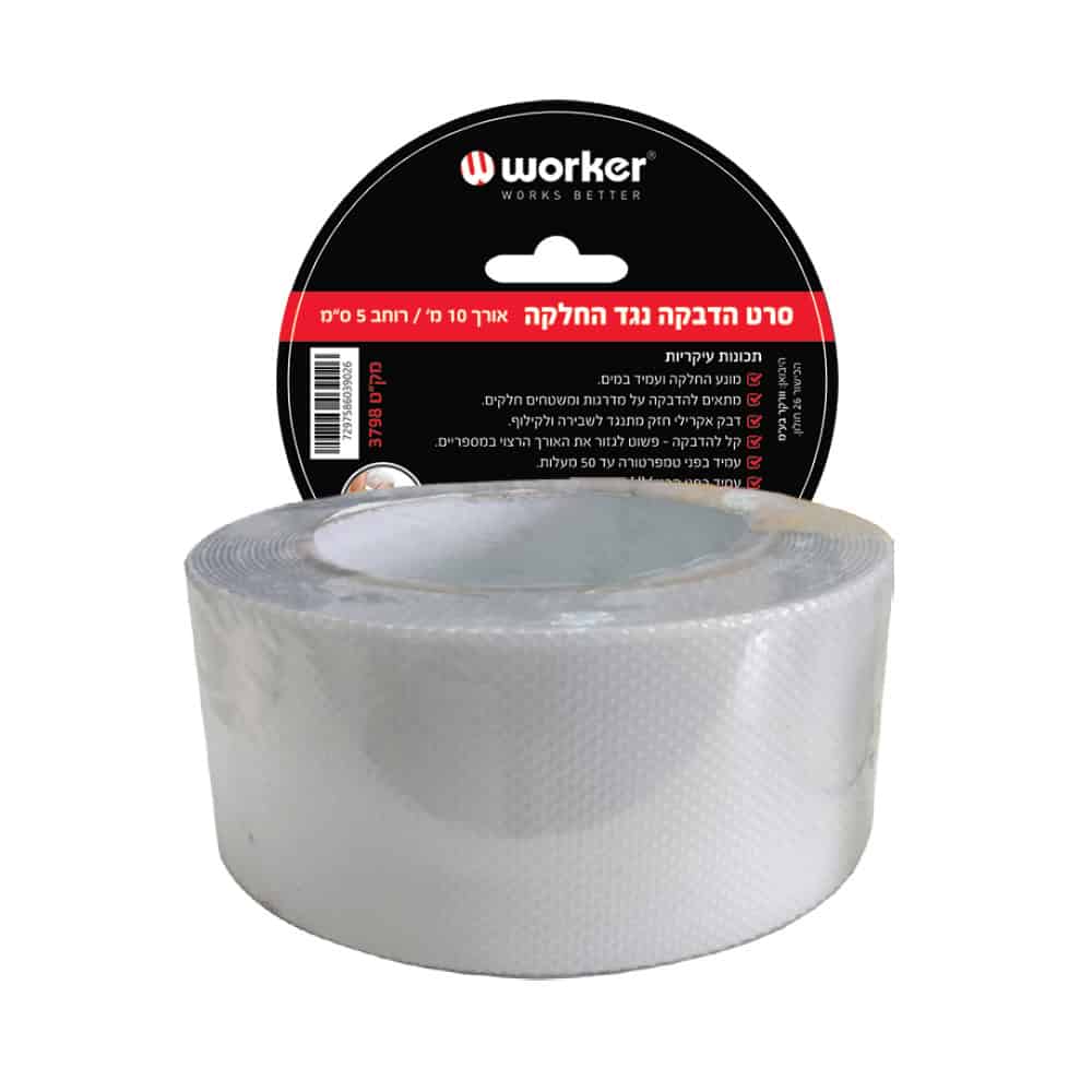 מידות – רוחב: 5 ס"מ , אורך: 10 מ' צבע – לבן כמות בקרטון – 36 יח' מונע החלקה ועמיד במים. מתאים להדבקה על מדרגות ומשטחים חלקים. דבק אקרילי חזק מתנגד לשבירה ולקילוף. קל להדבקה – פשוט לגזור את האורך הרצוי במספריים. עמיד בפני טמפרטורה עד 50 מעלות. עמיד בפני קרני UV. עמיד בפני חומרי ניקוי.