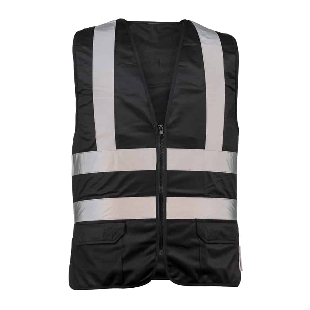 תקן : EN ISO 20471:2013 הרכב בד: 100% פוליאסטר משקל בד: 120 גרם למ"ר אפוד מתכוונן בחזית 5 כיסים, מתוכם 2 תחתונים הנסגרים ע"י רוכסן כיס אחורי נסגר על ידי רוכסן, לכל רוחב הגב פס זוהר ברוחב 5 ס"מ בחלק העליון פס זוהר נוסף ברוחב 5 ס”מ כחלק האחורי בתחתית הווסט ספוג מושחל בהיקף הצווארון לנוחות הלבישה באזור הצוואר וסט קרגו שחור ללא תקן