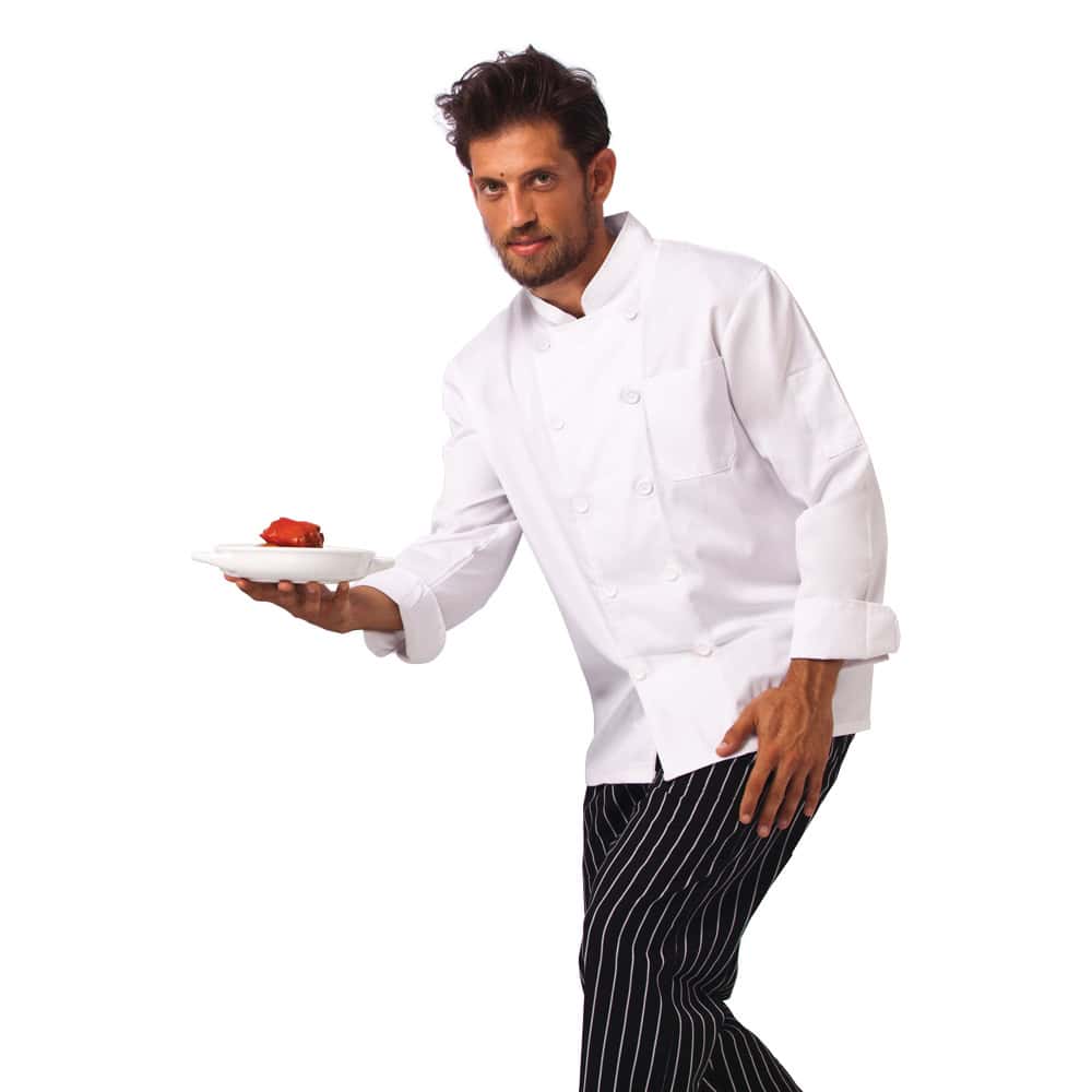 תקן: נבדק ע"י מכון התקנים הישראלי הרכב בד: 65% פוליאסטר 35% כותנה משקל בד: 200 גרם למ"ר ז'קט בסיסי בעל 2 שורות כפתורים 10 כפתורים לבנים כיס בחזית הז'קט כיס נוסף על שרוול שמאל צווארון סיני חפת השרוול ניתן לקיפול