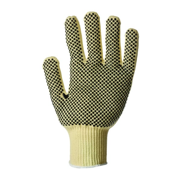 כפפות עשויות קוולאר לעבודה במגע עם חום. נקודות PVC לאחיזה מוגברת. אידיאליות לעבודה עם משטחים חלקים וחדים.