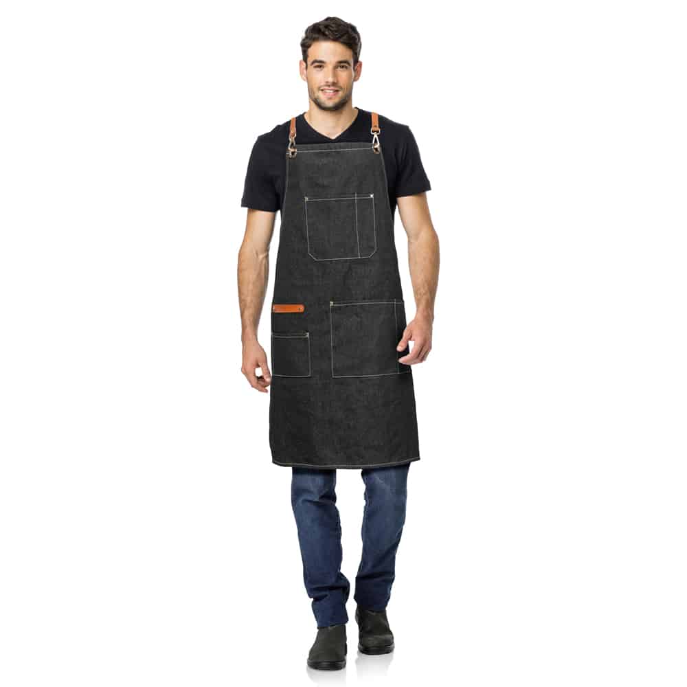 100% כותנה סינר בעיצוב אופנתי ג'ינס בשילוב רצועות דמוי עור שני סינרים באחד! שינוי במיקום הרצועות מאפשר לקפל את הסינר ולהפוך אותו לסינר חצי