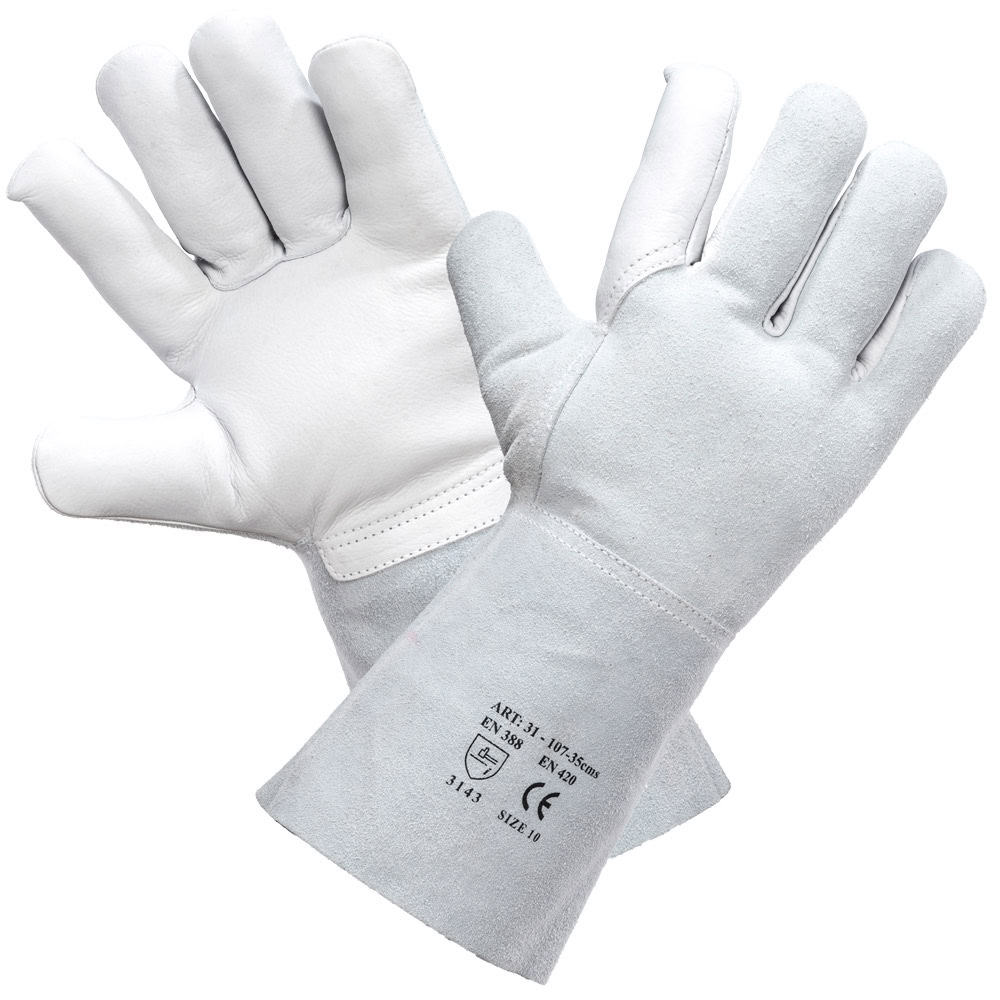 תקן : EN 388 :2016, EN 407:2004 EN 12477:2001Type A כפפות עור מלא איכותיות עובי 1-1.1 מ"מ חיזוק באיזור כף היד ובאצבעות לעמידות מכאנית גבוהה תפירת קוולאר לעמידות בפני חום וחיתוך לעבודות ריתוך מגוונות ועמידות בפני נתזים קלים של מתכת נוזלית