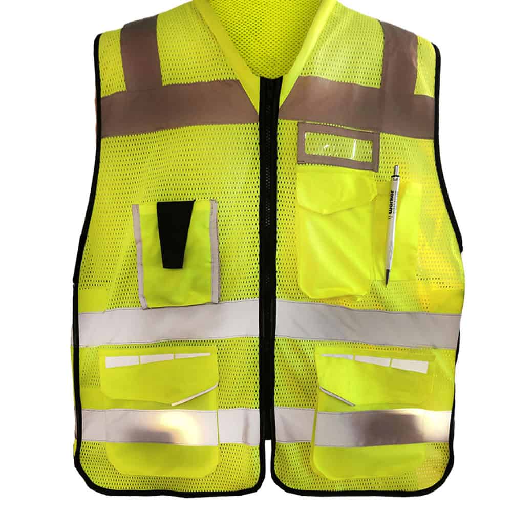 תקן : EN ISO 20471:2013 הרכב בד: 100% פוליאסטר רשת ווסט רשת קל ומאוורר מרובה כיסים מיקום לעטים ומכשיר קשר כיסים דקורטיביים בכיסים תחתוניים