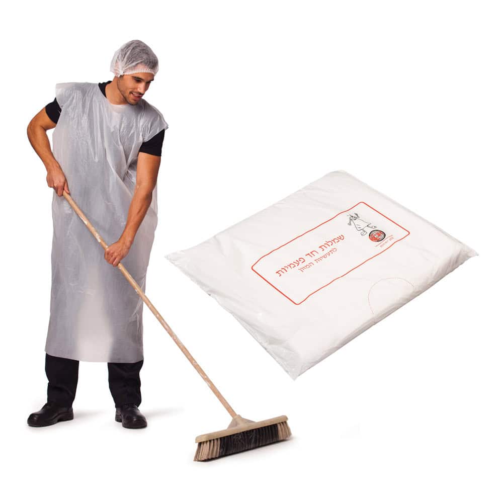 חומר: ניילון LD אורך: 135 ס"מ, רוחב 70 ס"מ מיועד להגנה על הביגוד מתאים לעבודה באזורים רטובים ויבשים