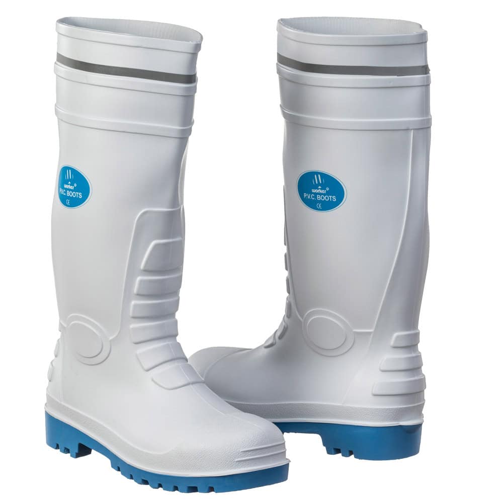 תקן: ISO 20345 גפה: NITRIL סוליה: P.V.C משקל: 1105 גרם מגף בטיחות איכותי המתאים לסביבות עבודה קשות התנגדות מצוינת להחלקה – SRC אימום אנטומי רחב במיוחד כיפת מגן ורפידה עשויים מתכת פס זוהר רפלקטיבי בקצה המגף עמיד בפני נוזלים וכימיקלים מתאים לשימוש בענף המזון תוצרת סין מידות: 36-49 צבע: לבן