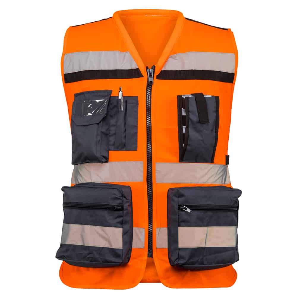 תקן: EN ISO 20471:2013 הרכב בד: 100% פוליאסטר משקל בד: 120 גרם למ"ר אפוד נרכס מלפנים ע"י רוכסן ספירלי מס' 5 2 פסים זוהרים רוחביים בחזית ובגב האפוד זוג סקוצ'ים בכל אחד מצדי האפוד לצורכי הצרה או הרחבה 5 כיסים בחזית, 2 תחתונים נסגרים עם רוכסן פס כיס ויניל בחזית להוספת תג