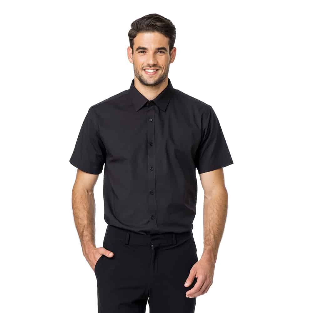 הרכב בד: 67% כותנה 30% פוליאסטר 3% ספנדקס חולצה אופנתית מכופתרת ללא כיס עם שרוול קצר גזרת FIT SLIM צרה המותאמת לקהל צעיר יותר צווארון ושינה בעיצוב עדכני וצר בד נעים ואיכותי מתאים לבתי מלון, מסעדות, מלצרים, הייטק, שיווק וקבלת קהל