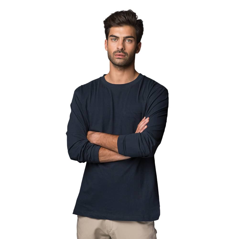 הרכב בד: 100% כותנה משקל בד: 160 גרם למ"ר חולצת טריקו עם שרוול ארוך ללא תפרי צד מנג’ט בסיומת השרוולים לבטיחות ונוחות מרבית תוספת כיס בחזית החולצה מנג'ט בסיומת השרוולים לבטיחות מרבית תוספת כיס בחזית החולצה