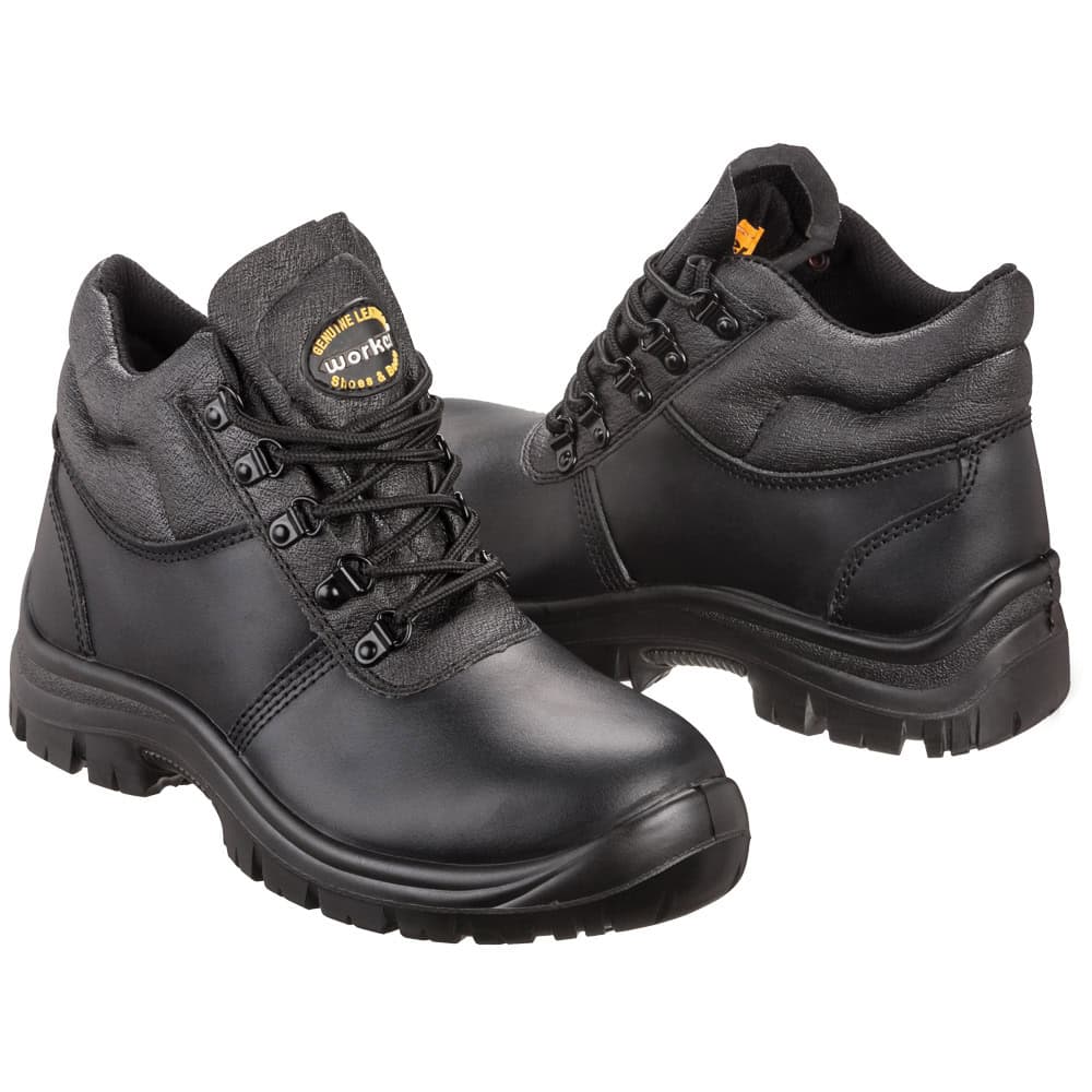 שחור מידות: 38-48 נעל עבודה מבית WORKER, חזקה ועמידה. הנעל בעלת אימום רחב, מיועדת לסביבות עבודה מגוונות כגון חקלאות, אחזקה ותעשייה קלה. גפה מעור פרה חזק ועמיד המספק אחיזה ויציבות לרגל לאורך זמן סולית PU חזקה , בעלת התנגדות טובה להחלקה. מדרס EVA נשלף אנטיבקטריאלי בעל יכולת ספיגת זעזועים ולנחות מרבית לאורך זמן ממושך